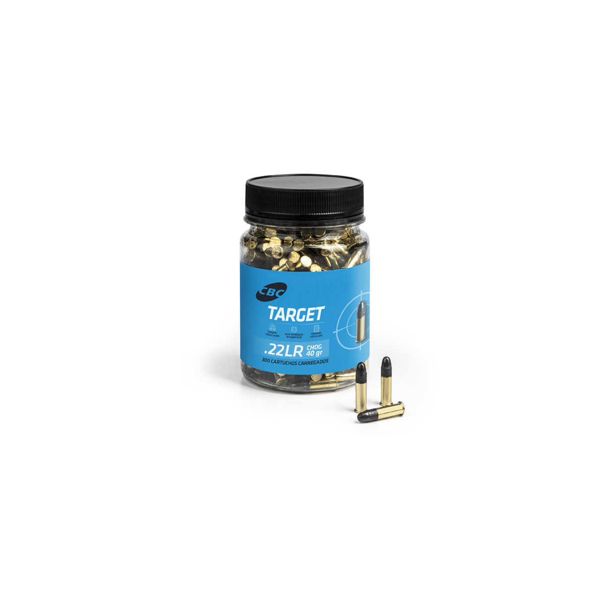 As Munições .22 Target CBC foram especialmente desenvolvidas para o tiro de lazer, treinamento e caça de pequenos de pequenos animais. A .22 LR Target conta ainda com a novidade de embalagem plástica com 300 munições, tampa rosqueável e lacre inviolável.